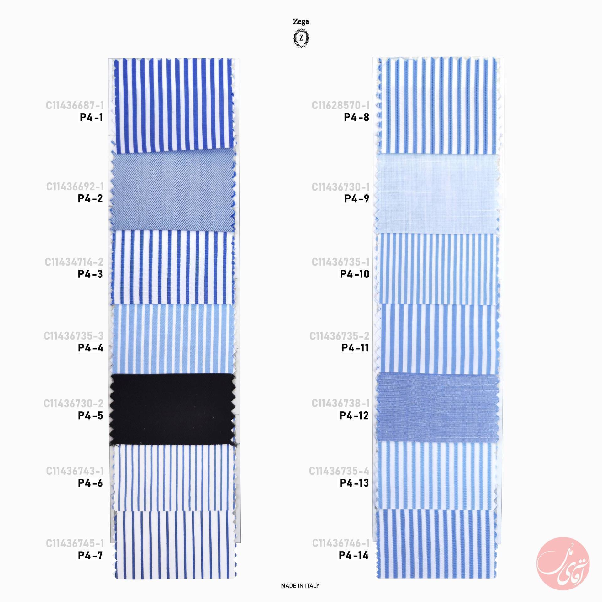 پارچه های پیراهنی از برند Zega ایتالیا، پیشنهادی سخاوتمندانه برای آقایان سخت پسند می باشد. جنس این پارچه ها از ۱۰۰٪ نخ پنبه خالص است و فوق العاده لطیف و سبک هستند. در این مجموعه نفیس ، پارچه های متنوعی از نوع ساده و طرحدار به چشم می خورد که طیف وسیعی از سلیقه ها را پوشش می دهد