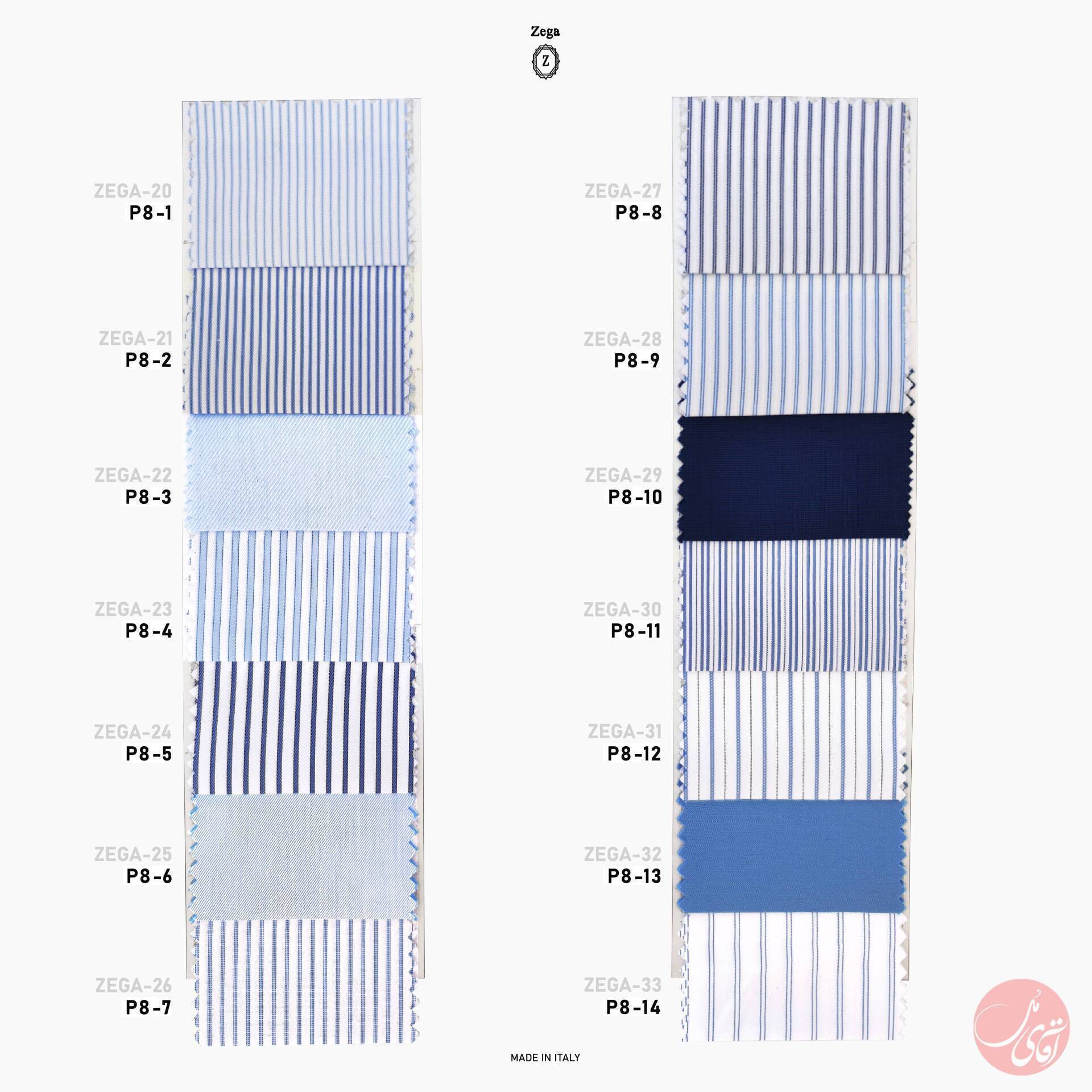 پارچه های پیراهنی از برند Zega ایتالیا، پیشنهادی سخاوتمندانه برای آقایان سخت پسند می باشد. جنس این پارچه ها از ۱۰۰٪ نخ پنبه خالص است و فوق العاده لطیف و سبک هستند. در این مجموعه نفیس ، پارچه های متنوعی از نوع ساده و طرحدار به چشم می خورد که طیف وسیعی از سلیقه ها را پوشش می دهد.
