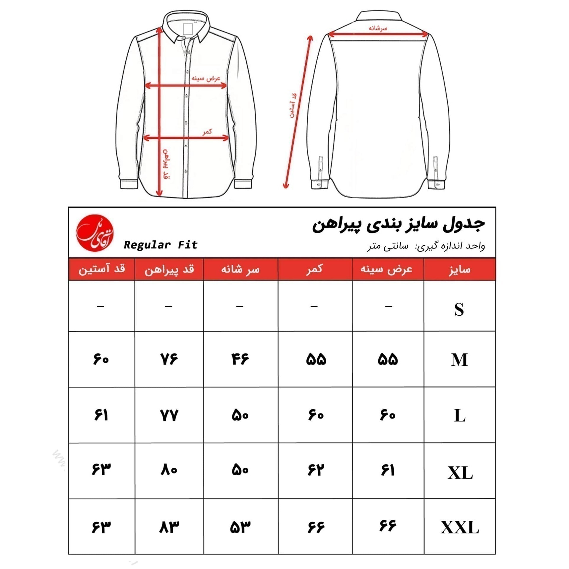 - راهنمای انتخاب سایز پیراهن